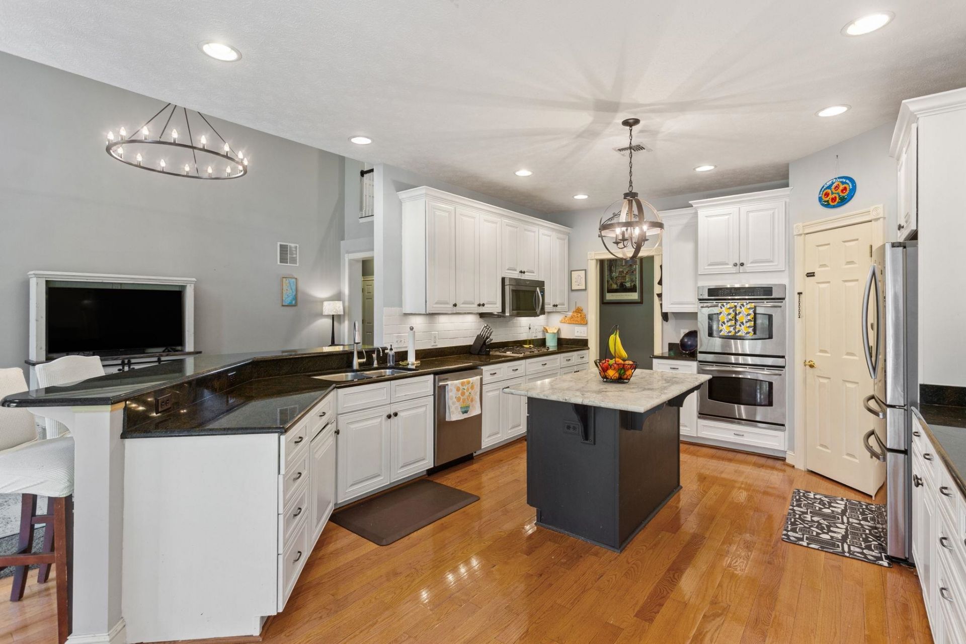 An elegant brick contemporary home that blends timeless sophistication with modern design, creating a residence that feels both refined and inviting. Set in a manicured, mature neighborhood within the city limits. Inside, the home opens into expansive, light filled spaces defined by an open floor plan and seamless flow from room to room. Airy interiors, high ceilings and a connection between indoor and outdoor living on the private patio. Many high end interior finishes with a soft, warm color palette. Master suite is on the main level. The lower level offers another living space with kitchenette, dining area, family room, bedroom & full bath. Plus lots of room for storage or creating a gym area. Overall the home embodies a harmonious balance of class, charm and contemporary luxury. New/Newer duel heat pump systems. Duel hot water heaters.