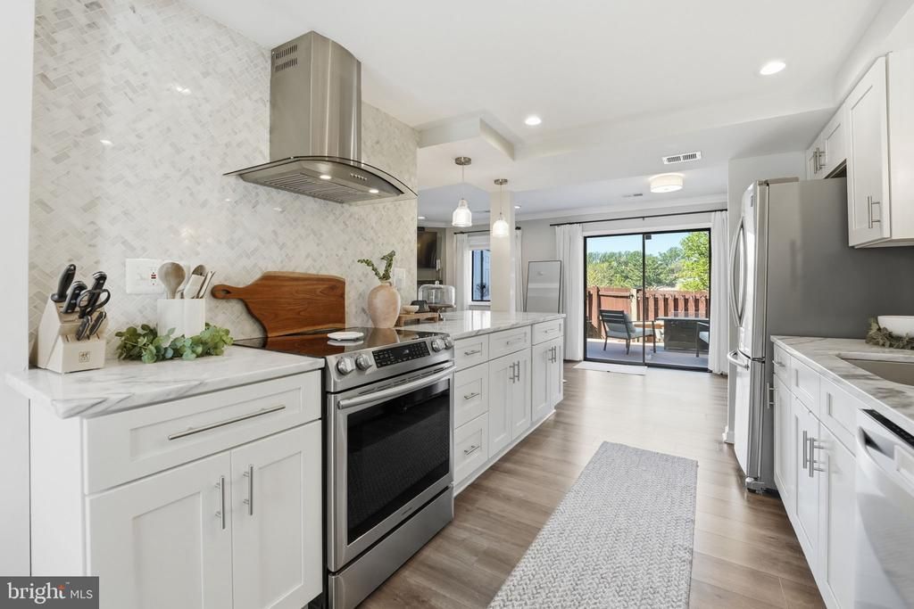 Welcome home to this beautifully renovated townhome overlooking Willow Lake in the sought-after Sugarland Run community, just minutes from shopping, dining, and everyday conveniences. From the moment you step inside, you’ll notice the light-filled spaces, luxury plank flooring, and tasteful millwork and accent details throughout. The kitchen serves as the centerpiece of the home, featuring white shaker cabinetry, stainless steel appliances, quartz countertops with subtle grey veining, and a herringbone marble backsplash that extends to the ceiling. Additional highlights include a wide stainless steel sink with a pull-down faucet, a three-door refrigerator, a range hood, convection oven, and a peninsula with seating—offering both function and style. Adjacent to the kitchen, the family room provides a comfortable gathering space with a sleek linear electric fireplace and an accent wall. A convenient half bath and laundry room complete the main level. Upstairs, you’ll find three bedrooms and two full bathrooms. The primary suite includes a private balcony overlooking the front of the home and an updated en-suite bath with marble-inspired porcelain tile and upgraded vanities. The secondary bathroom is thoughtfully designed with an oversized vanity, dual sconces, a penny tile accent wall, and marble tile in the tub/shower combination. Outdoor living is just as inviting, featuring a deck and turf—ideal for dining, entertaining, or enjoying time with family or pets. An added bonus is the spacious storage room located off the back of the home. Additional upgrades include added attic insulation, fresh paint, and a Nest thermostat. The home includes two parking spaces and is located just steps from the pool and community center. Sugarland Run offers a range of amenities, including a recently renovated Olympic-sized pool overlooking Willow Lake, playgrounds, trails, tennis and basketball courts, and community spaces. Conveniently located near Harris Teeter, Costco, Target, First Watch, Paris Baguette, Giant Food, and several local dining favorites. This home will not last long—schedule your showing today!