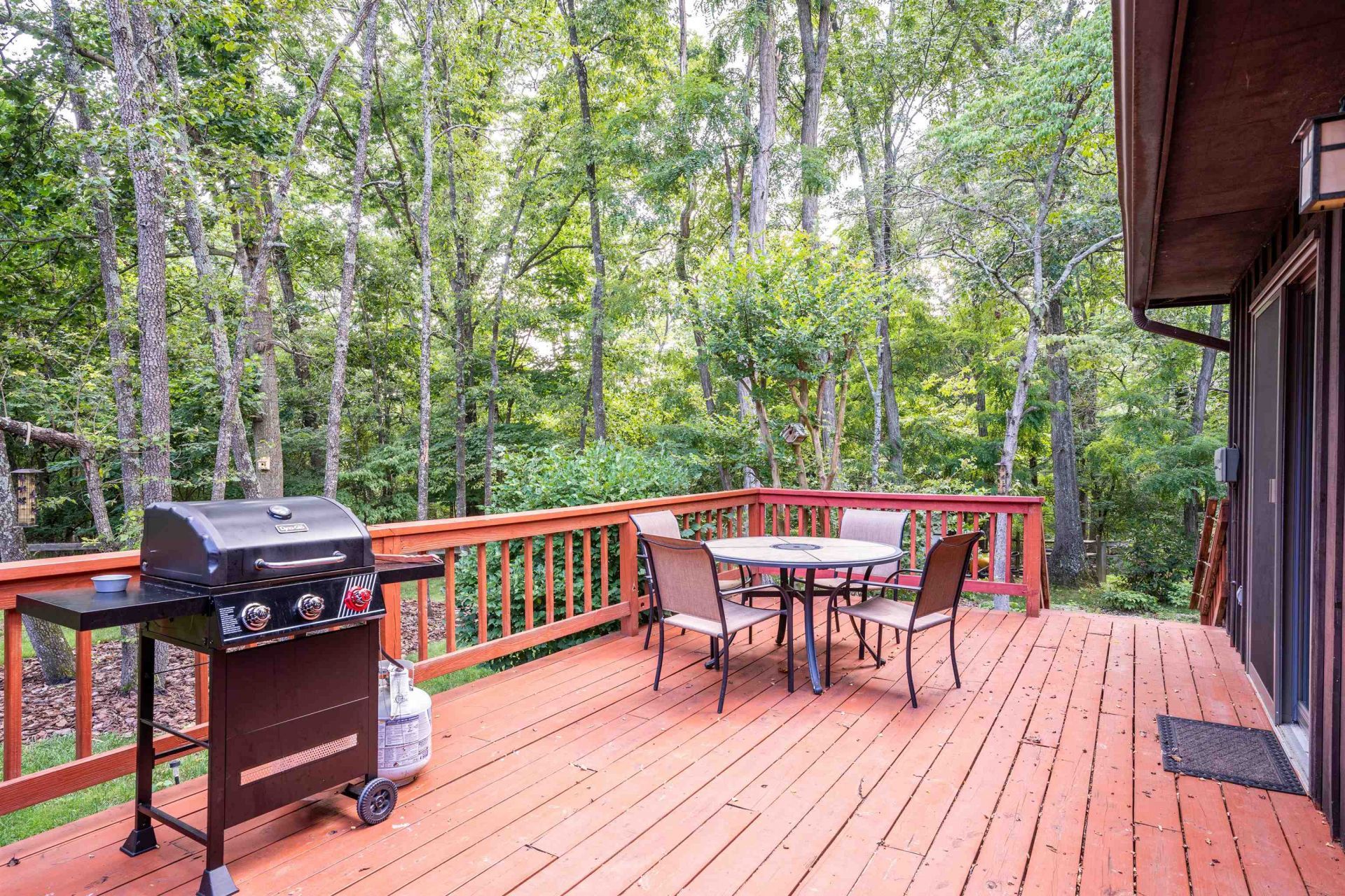 This thoughtfully designed 2,000 sq ft retreat with serene, wooded views is nestled in a peaceful setting with a flat, fenced backyard and a private deck, this beautifully updated home blends simple, nature-inspired design with spacious, functional living. Cathedral ceilings, exposed wooden beams, and abundant natural light create an inviting atmosphere that brings the outdoors in. Inside, the home features two master suites, two generous living areas, and a loft, providing ample room for gathering or spreading out. Large windows overlook the wooded backyard. This is an ideal place to call home or weekend getaway.