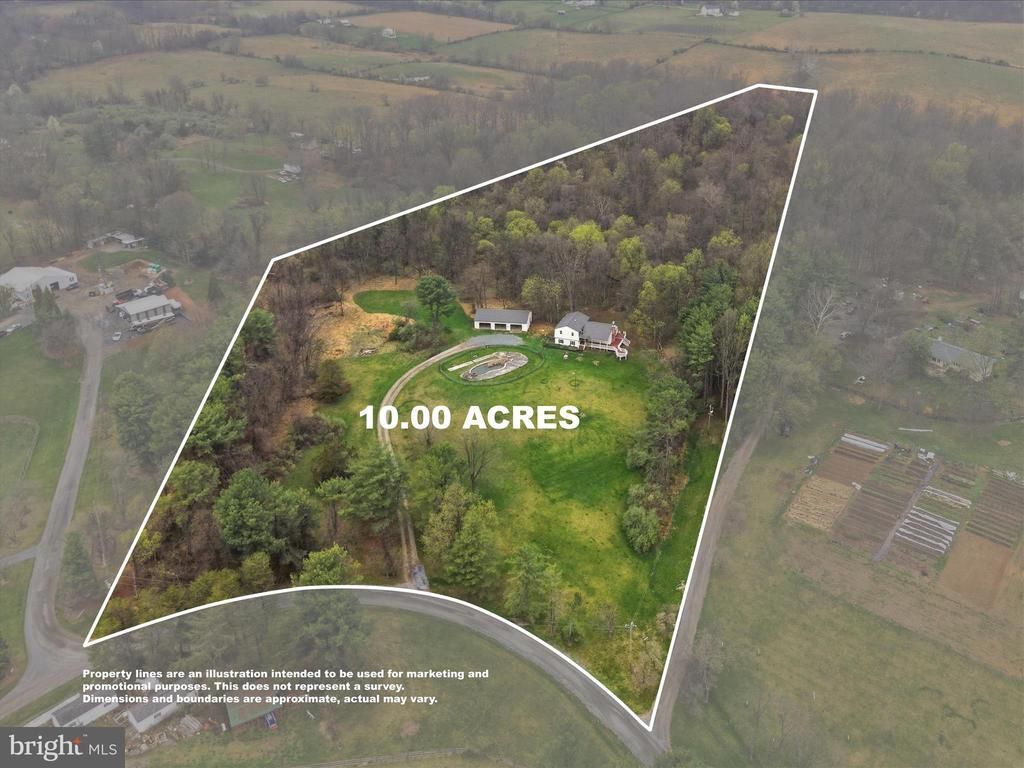 Nestled in the serene landscape of Lovettsville, this 4 Level home offers a privacy and serenity. Set on a sprawling 10-acre lot that backs to tall hardwood trees, it's a retreat from the hustle and bustle of everyday life. Look out onto the pasture-like front yard as you sit in a rocking chair on the wrap-around porch. You won't see many cars driving by since this is a non-through street with only 7 homes. The 4 Bedrooms on the upper level all have freshly sanded wood floors. Hardwoods are also on the main level. The heart of the home is the cozy living room, highlighted by a brick hearth and fireplace while the large bay window looks out onto the vista in the front. Peering out from the kitchen window will transport you right into your own nature wonderland as you consider chopping wood, building forts or just watching nature. The 3rd level (lower level 1) is fully finished which offers a walkout level and rear entrance, and full bath. There are also 2 additional rooms that can be tailored to your needs-be it a home office, gym, or entertainment area. And the convenience of a lower-floor laundry adds to the home's functionality. Outside, the former in-ground pool was converted a while back into a pond. The very oversized detached garage (27' x 52'), has space for at least four vehicles, ensuring that your prized possessions are well cared for. Enjoy the peace of rural living while being just a few minutes from Historic Waterford. Whether you're hosting large gatherings or seeking solitude, this property offers the perfect backdrop for creating cherished memories. This home is ready for your personal updates.